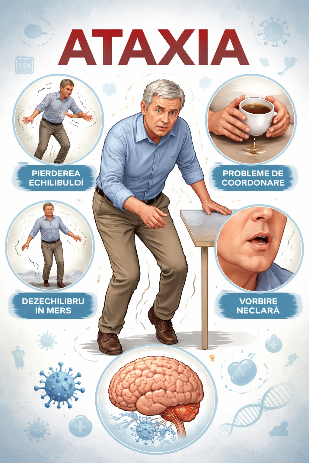 Ataxia este un termen folosit pentru a descrie o serie de afecțiuni neurologice, care duc la afectarea în special a: