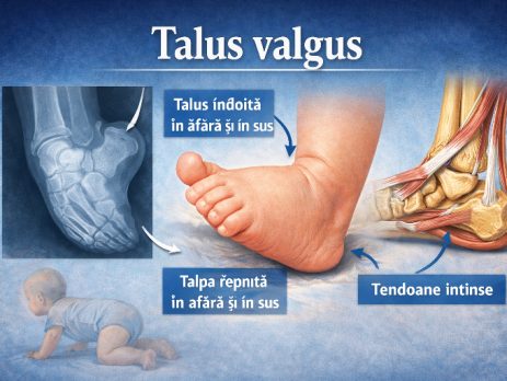 DEFINIȚIE TALUS VALGUS: Printre cele mai frecvente afecțiuni congenitale ale piciorului putem aminti talus valgus-ul. Acesta se caracterizează prin poziția anormală a labei piciorului, fiind în flexie dorsală, aproape lipită de gambă. Apare în aceeași măsură la fete și la băieți. Cheia corectării este intervenția timpurie alături de personal calificat. CAUZE...